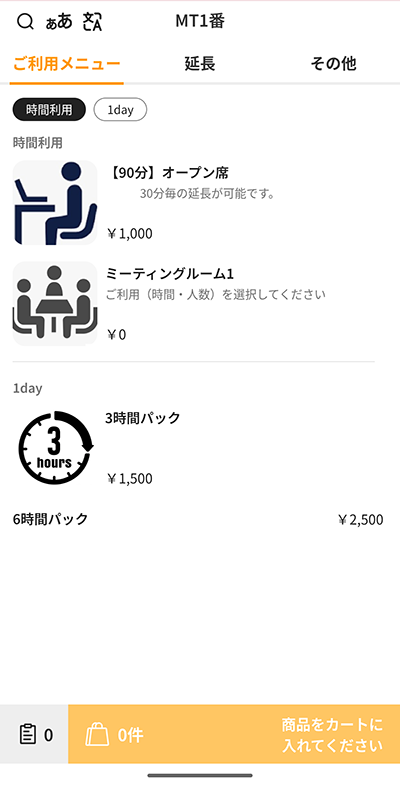 お好きな席にお座りいただき、席に設置されているQRコードからご利用時間を選んでください。