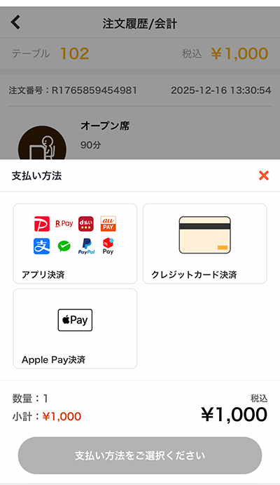 入店時と同じQRコードからモバイル決済でお支払いください。